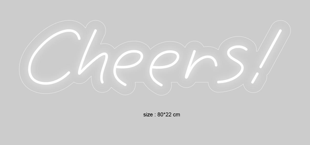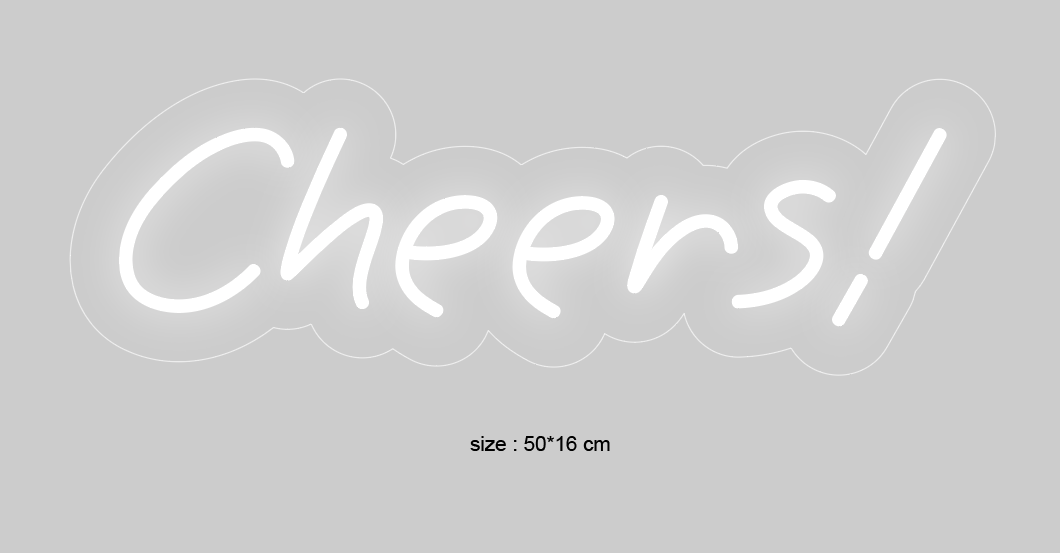 Skap en livlig og innbydende stemning med vårt 'cheers!' led neonskilt. Dette skiltet er perfekt for både bedrifter og hjemmekos, og tilbyr et spekter av fargevalg for å matche ethvert interiør. Med et enkelt og uttrykksfullt design, lyser det opp rommet og ønsker gjester velkommen med en varm atmosfære.
