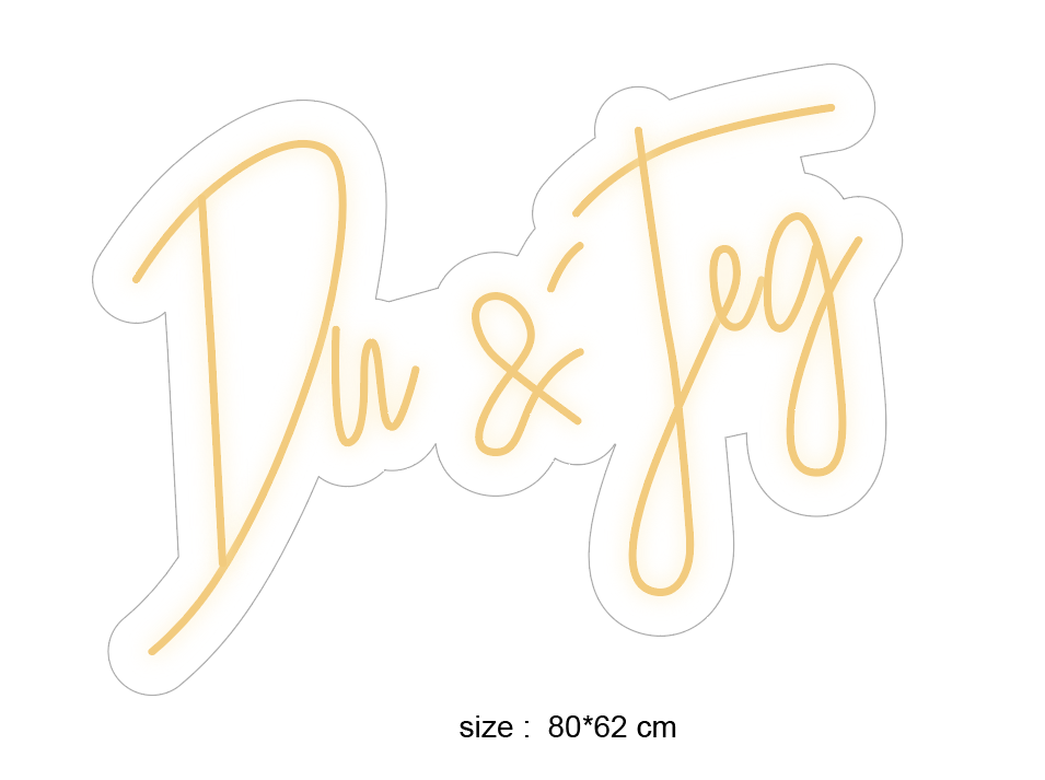 Skap en romantisk og stilfull atmosfære med 'du & jeg' led-neonskiltet, ideelt for par eller som en unik gave. Velg mellom ulike størrelser og farger for å tilpasse det perfekte skiltet til ditt private rom eller forretningslokale.
