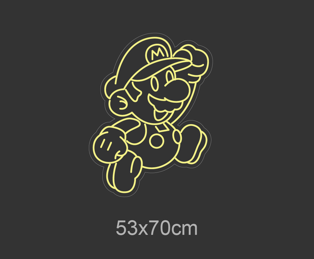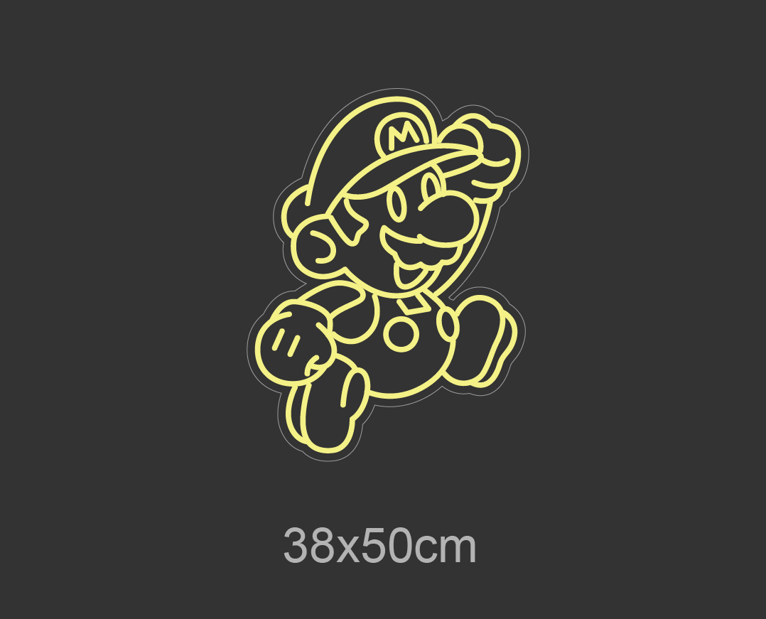 Gjør rommet levende med vårt 'super mario' led neonskilt. Det perfekte valget for gamere og retrofans – velg nettopp din favorittfarge og tilfør et personlig preg til din plass.