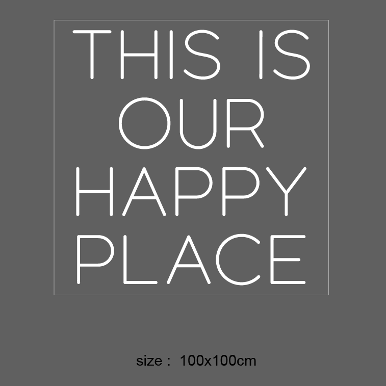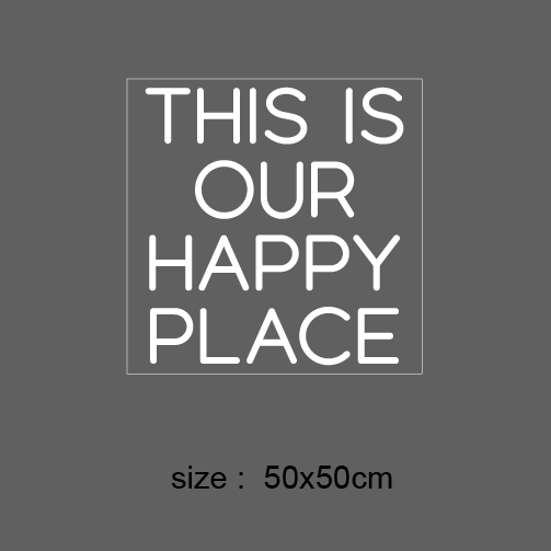 Skap et lykkelig rom med vårt 'this is our happy place' led neonskilt. Tilpasset for å spre glede og positiv energi, er dette neonskiltet det perfekte tillegget for å gjøre ethvert sted mer personlig og innbydende. Velg din favorittfarge og gi rommet ditt en varm og behagelig atmosfære.